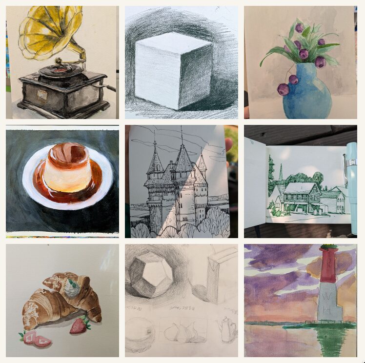 Through learning sketching, watercolour, and acrylic painting, children gradually learn to slow down, observe the world, and express their understanding through art.